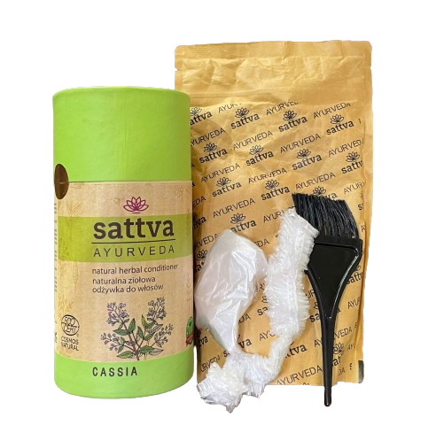 Sattva Cassia to naturalna odżywka roślinna, zwana również neutralną henną, która składa się w 100% z sproszkowanych liści Cassia Obovata. Zioła te są cenione za wyjątkowe właściwości regenerujące i kondycjonujące, które są szczególnie korzystne dla włosów łamliwych, cienkich, matowych oraz zniszczonych przez farbowanie chemiczne. Cassia pozwala na naturalne wzmocnienie włosów, dodanie im blasku oraz delikatnego złocistego odcienia.